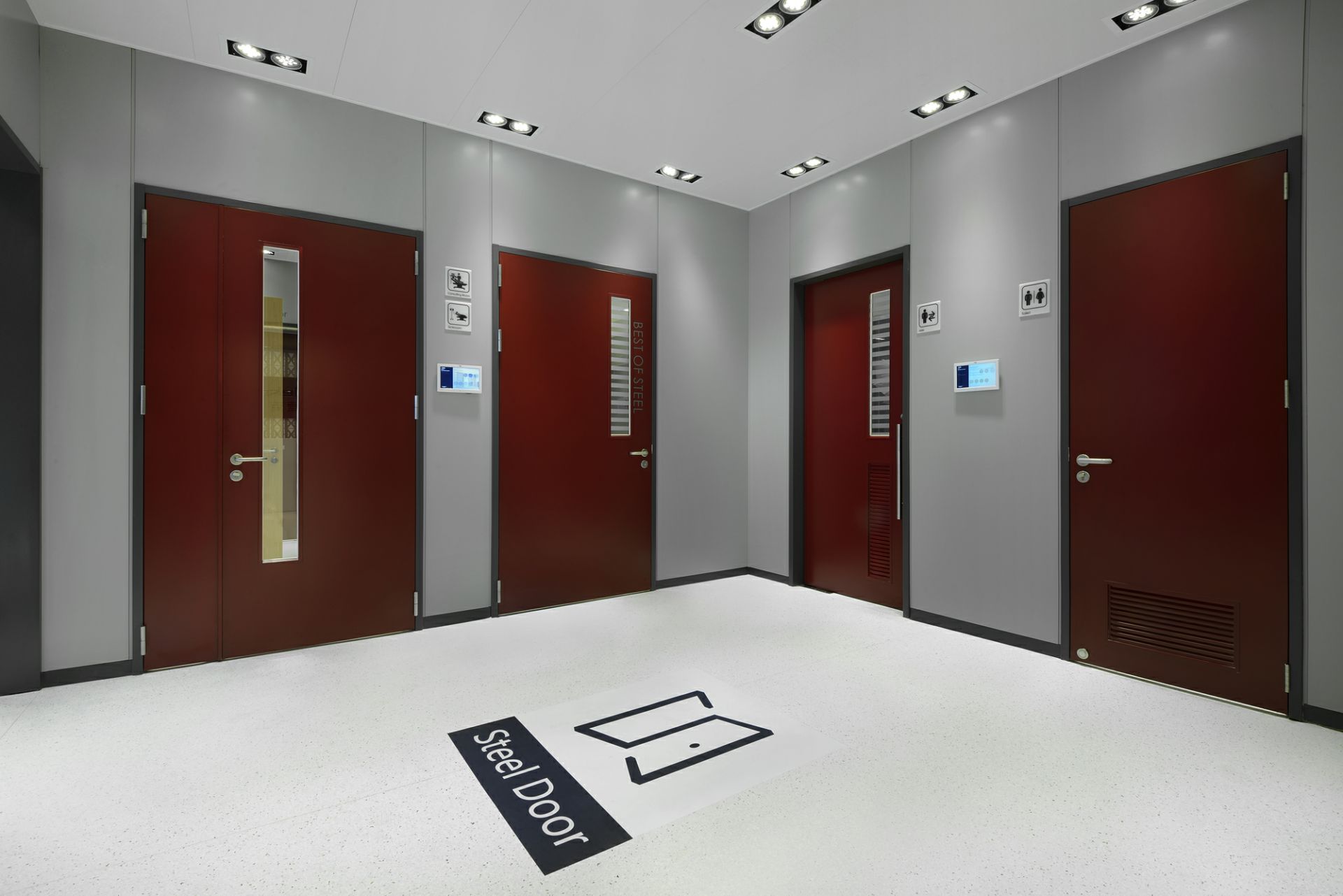 产品种类已覆盖医用钢质门、医用推拉门、室内门、防火门、钢质墙板、钢质空间隔断、金属吊顶等。从接待处到ICU,从化验室到手术室,从病房到行政办公,我们为医院空间环境设计研发多年的产品覆盖各类医院的特定需求..